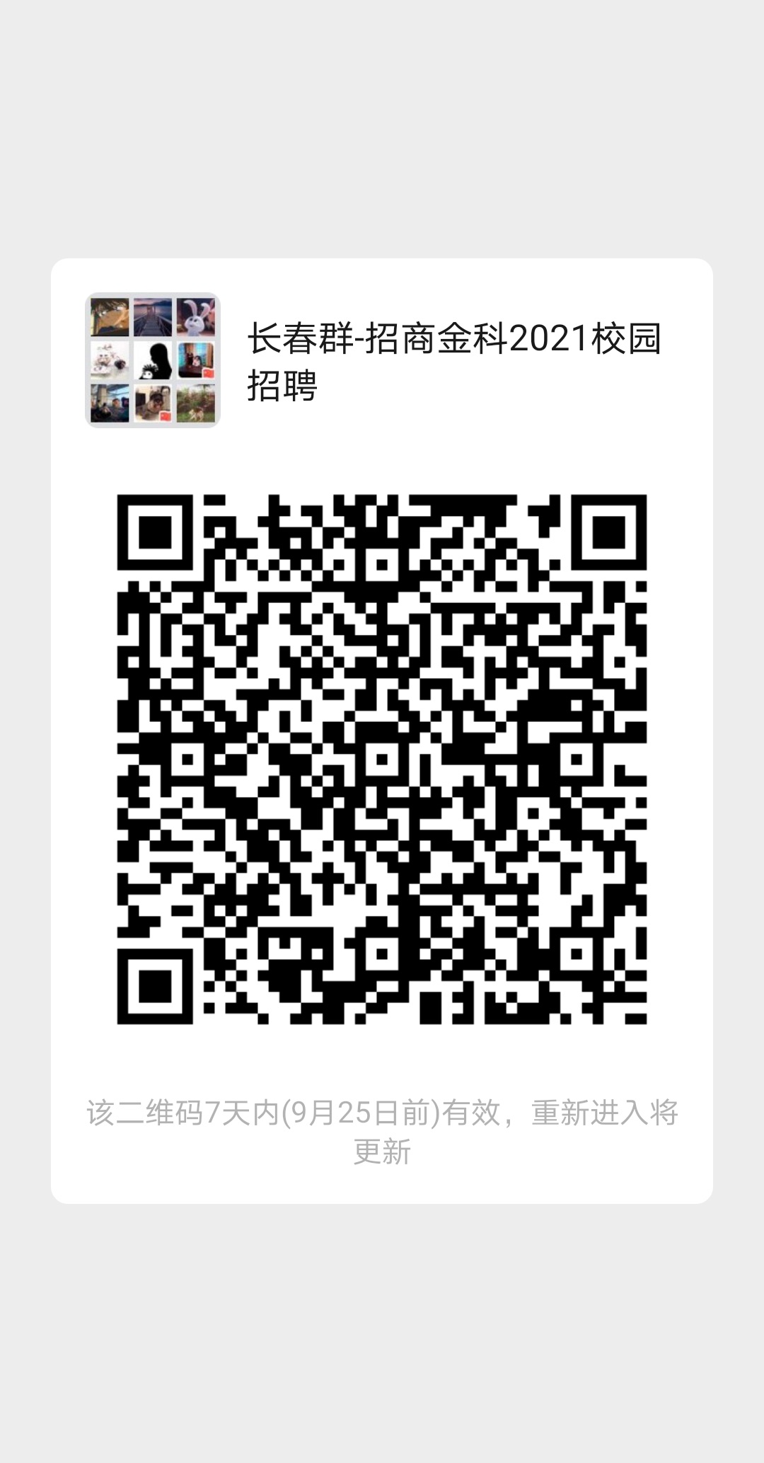 欢迎各位入群的同学!~招商局金融科技有限公司2021校园宣讲会—长春站,诚邀各位同学到场互动,领取精美礼品。大家也可邀请更多2021届同学入群,到宣讲会现场登记就有机会直通笔试和初面。长春站宣讲会具体行程: